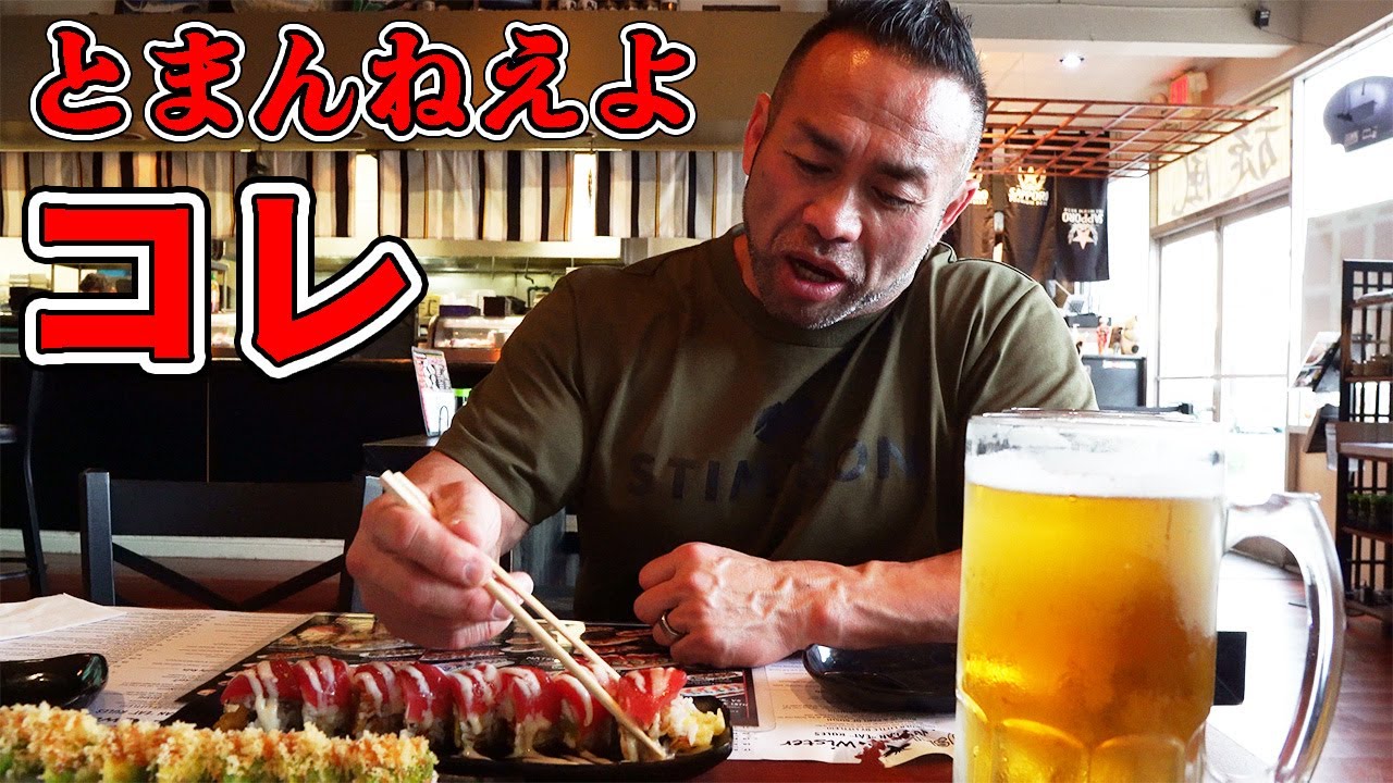 ボディビルダーがアメリカの寿司店で爆食いチートデイ